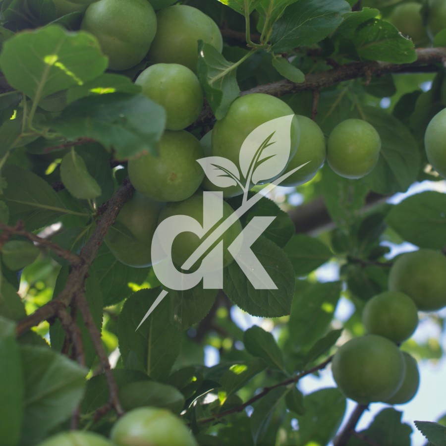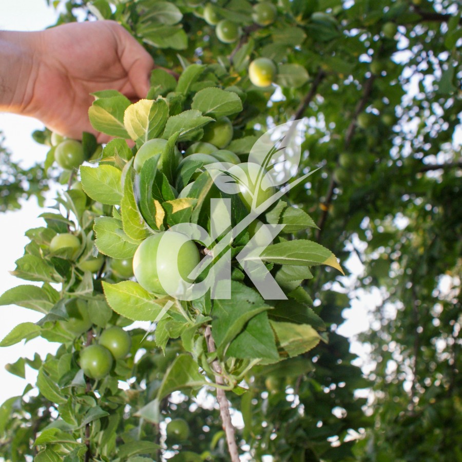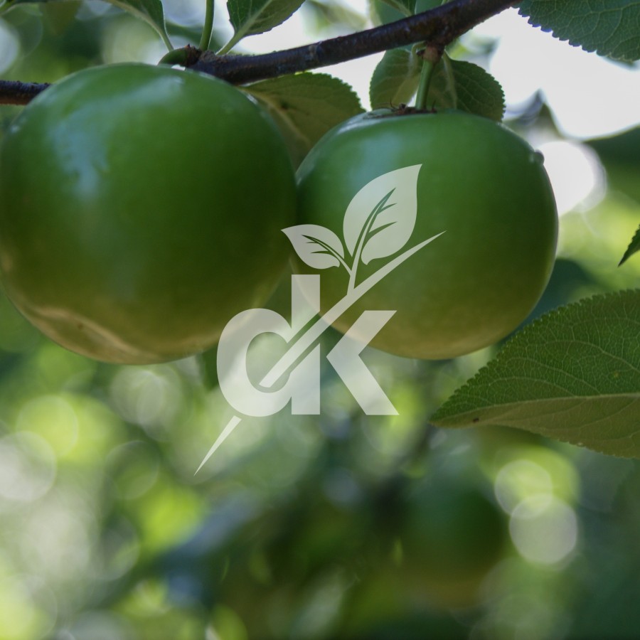 Плод средне-крупный и округлой формы. Имеет очевидную линию на брюшке и дымчатую кожицу на зеленом фоне. Мякоть хрустящая, сочная и зеленого цвета. Косточка полу-большая и прикреплена к мякоти. Когда созревает, кожица переходит в красный цвет и мякоть становится мягче, но его нужно употреблять в зеленой и плотной форме.